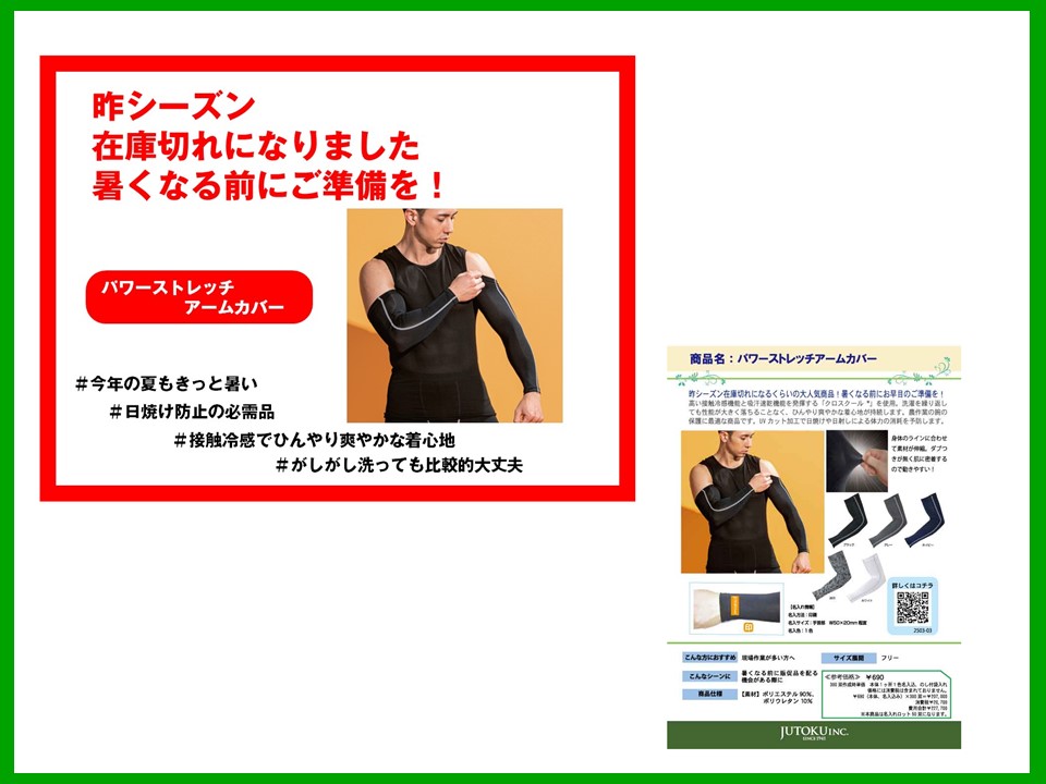 ●2025年4月21日に配信いたしました「【在庫切れになる人気商品】パワーストレッチアームカバー」です!
