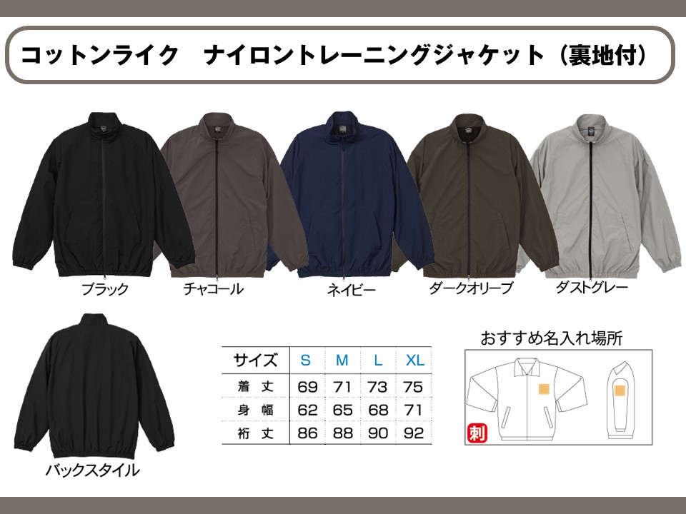 コットンライク ナイロントレーニングジャケット(裏地付) のご紹介
