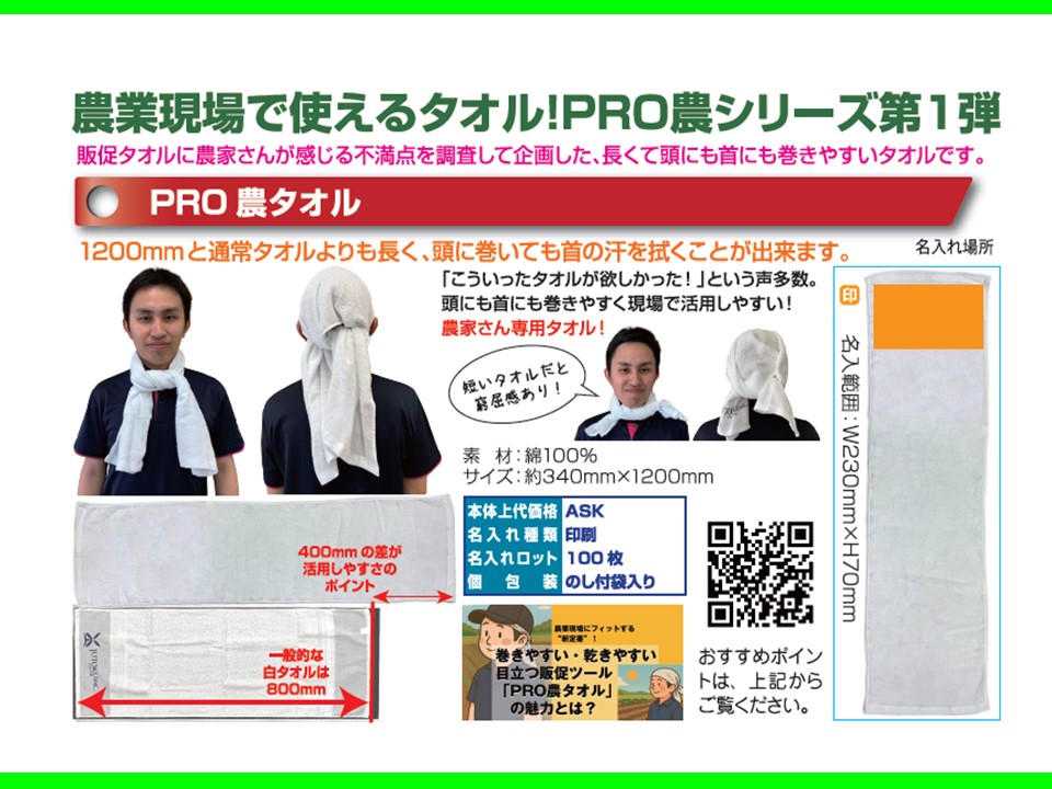 農業現場にフィットする“新定番”!長くて巻きやすい目立つ販促ツール「PRO農タオル」の魅力とは?