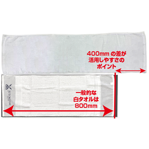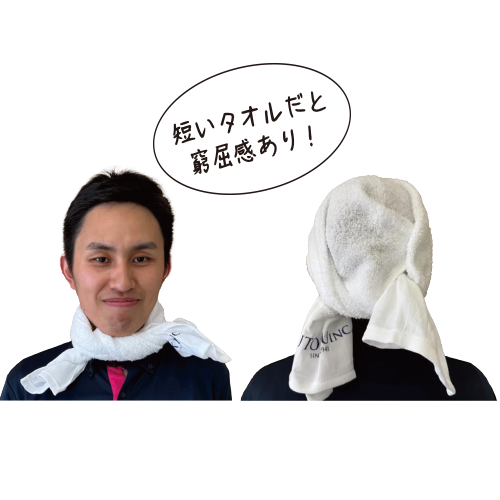 販促タオルに農家さんが感じる不満点を調査して企画した、長くて頭にも首にも巻きやすいタオルです。